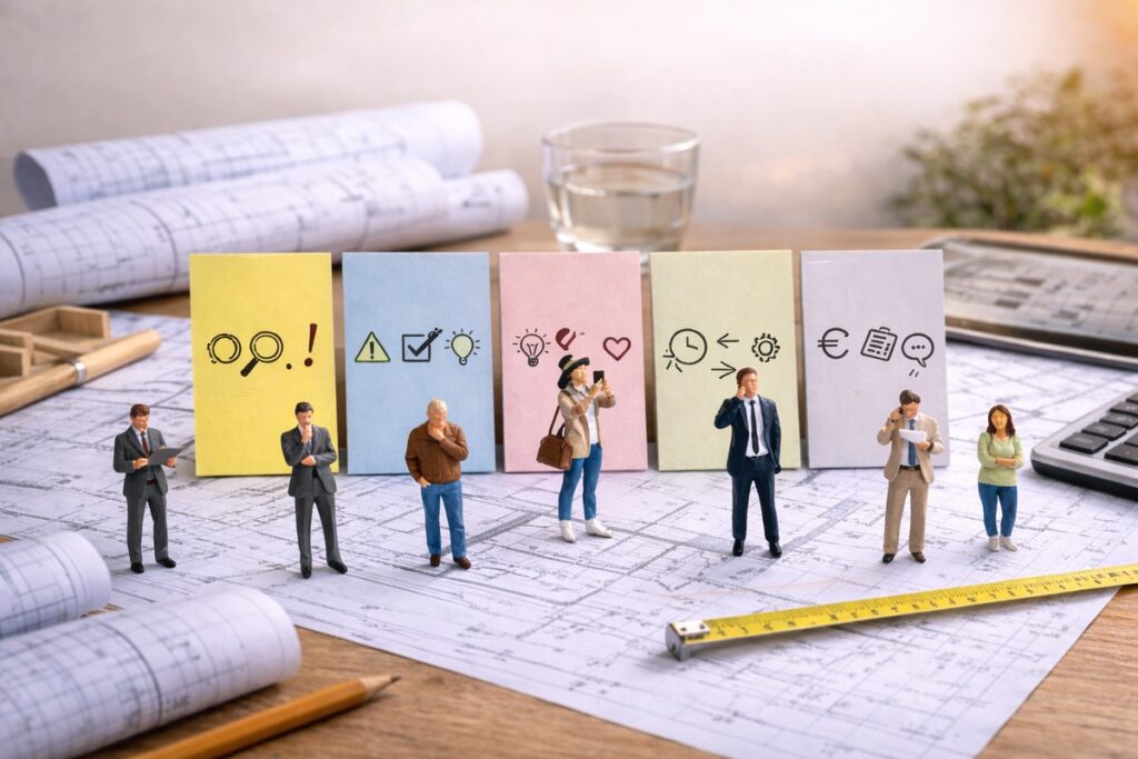 Viele Konflikte auf der Baustelle entstehen nicht wegen fehlender Kompetenz. Sie entstehen, weil auf unterschiedlichen Ebenen kommuniziert wird. Wenn du das einmal verstanden hast, verändert sich deine gesamte Projektführung. Es gibt drei Ebenen der Kommunikation im Projekt. 1. Die Sachebene Hier geht es um Argumente, Ästhetik, Technik, Logik.„Das wirkt stimmiger.“„So ist die Linienführung ruhiger.“Das Problem:…